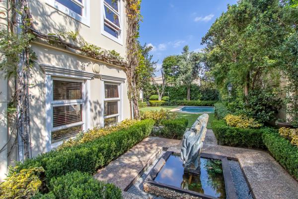 Impressive entrance hall leads into the home between an elegant double set of pillars. The garden area include a memorable water feature tucked between knee high hedges with an aggregate paved walkway leading to the North facing, largely lawned garden, with a sparkling pool set back against the backdrop of hedges and the tree lined boundary.