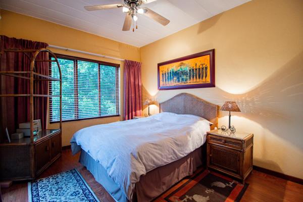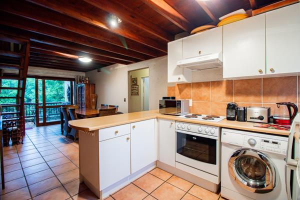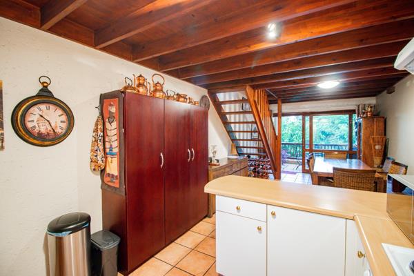 Brimming with character and charm, this 1st floor apartment with huge extended loft under thatch waits to welcome you home. The smart white kitchen, accommodating a breakfast bar, washing machine and fridge is enhanced by an extra three door built in cupboard with space for all your groceries, kitchen appliances and cleaning equipment. The large dining room opens onto the balcony where you can bask in the morning sunbeams as you sip your first coffee or, later in the day, enjoy the shade provided by the retractable awning. The main bedroom, which also has access to the balcony, easily fits a queen size bed while the 2nd bedroom is a generous double size. Both bedrooms have ceiling fans, laminated flooring and built in cupboards. The bathroom offers a shower, vanity and bath with hand shower attachment. Up the stairs to your private sanctuary, the loft lounge opens onto a secluded entertainer''s terrace with spectacular views from Magaliesburg to Northcliff Hill.
