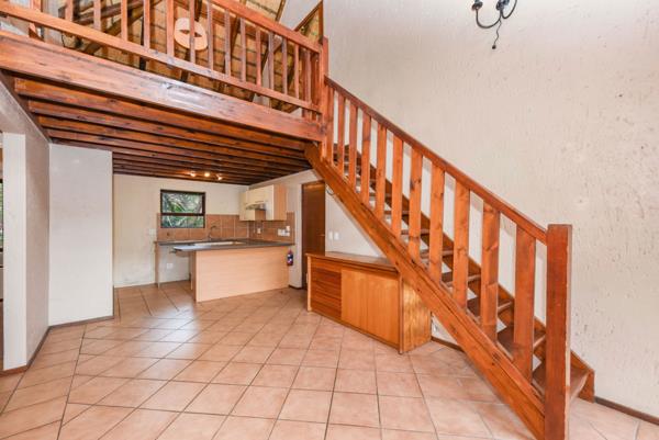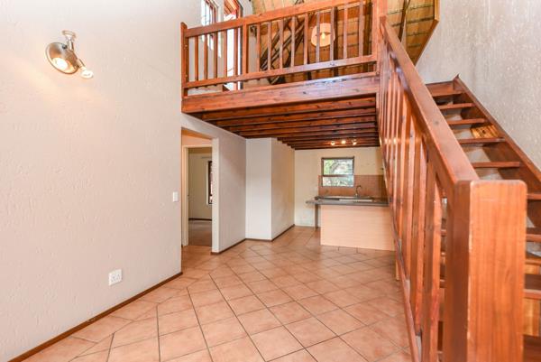 Two Bedroom Loft Apartment in Douglasdale!. A private positioned and neat loft apartment situated in the heart of Douglasdale. Boasts with spacious open plan tiled kitchen and living/dining area leading out to a patio overlooking the well-kept complex. There are two generously sized bedrooms with ample built in cupboards complimented by a full bathroom. Upstairs consist of an wooden loft which can be used as a lounge/TV room or potential for a third bedroom/study that leads out to a large roof top terrace with amazing views of the sunset.