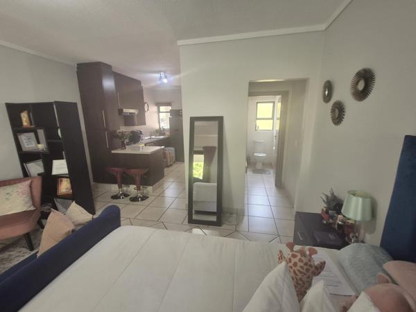 This cosy studio apartment is situated in one of the most sought-after suburbs in Johannesburg called Douglasdale, and the apartment is on the quieter side of the estate, overlooking trees and gardens.