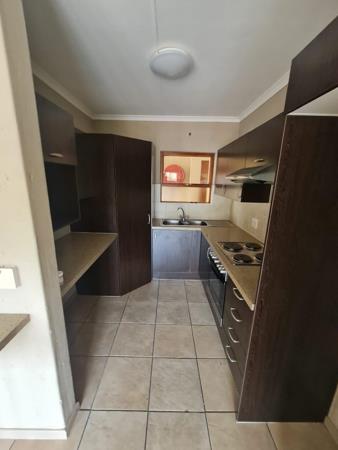 The kitchen boasts an open layout, with designated spaces for 2 appliances and a refrigerator.