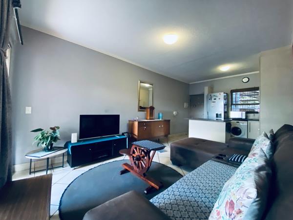 The lounge opens to a private covered patio and garden, offering a peaceful retreat. Currently tenanted with a rental income of R7,300 per month, this townhouse presents a fantastic investment.