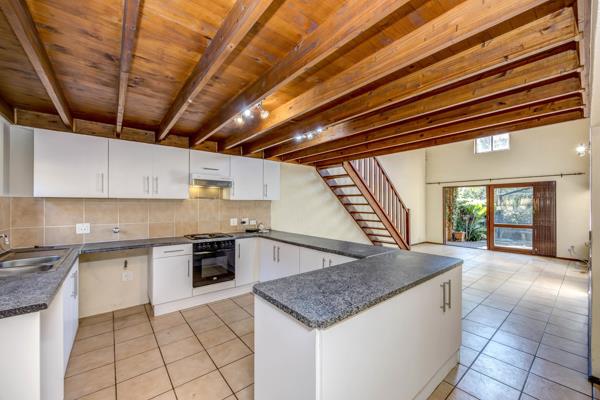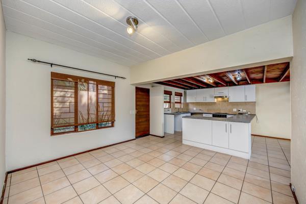 The large open plan lounge and dining room with high ceilings is light, inviting, homely and leads onto a pretty landscaped garden.