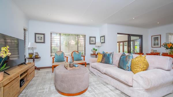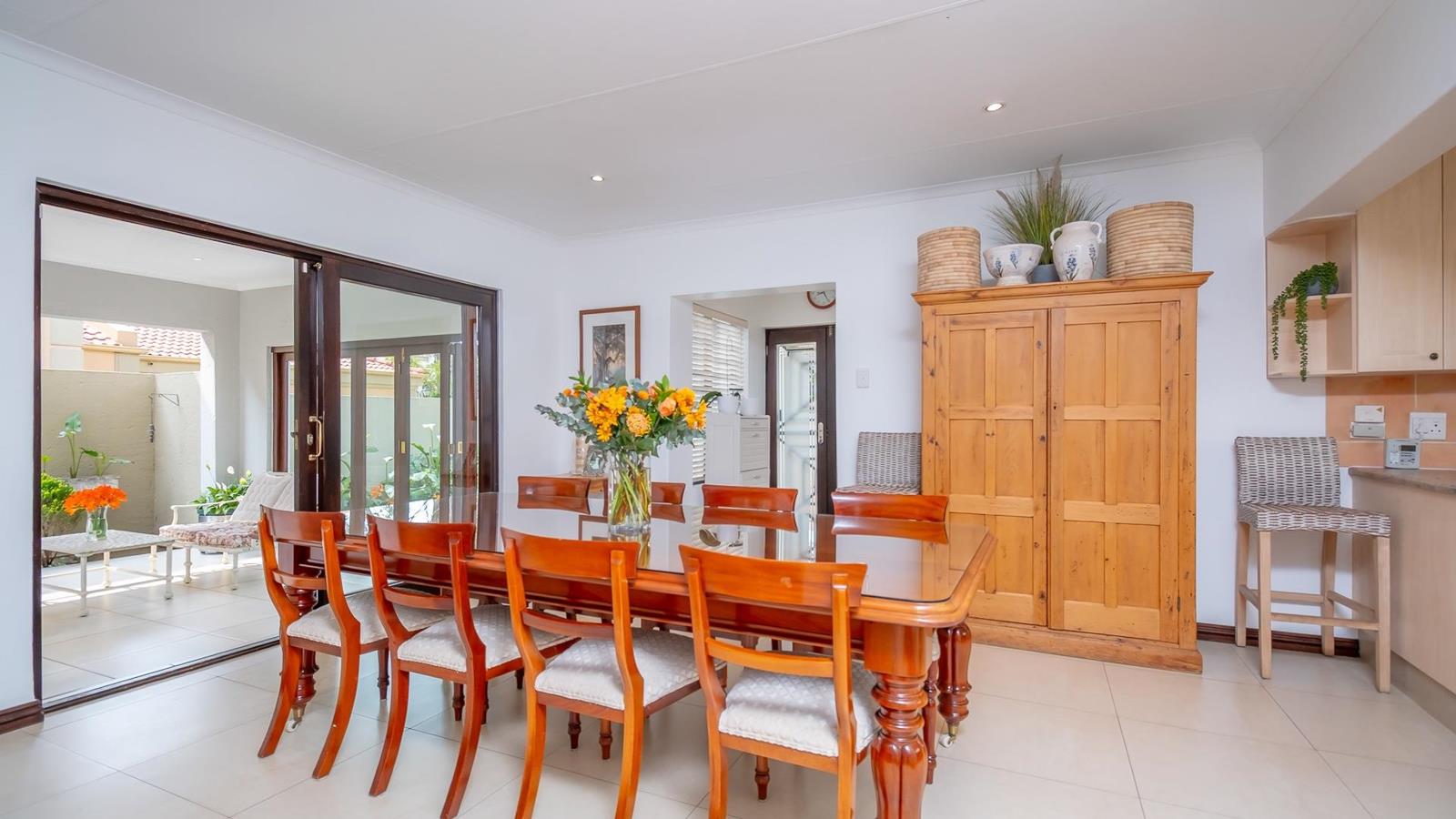 EXCLUSIVE MANDATE - Nestled within an intimate and highly sought-after estate in the leafy heart of Douglasdale, this single-level gem offers the perfect blend of elegance, comfort, and functionality. Step inside to an inviting, sunlit living space where open-plan dining, lounge, and a beautifully appointed kitchen flow seamlessly together. The kitchen, designed as the heart of the home, is both stylish and practical, featuring abundant cupboard space, a double-door fridge capacity, eye-level oven, electric stove and hob, prep sink, and a separate scullery. From here, sliding seamlessly onto the covered patio with stacking doors, you are greeted by a serene garden setting and additional outdoor seating an idyllic backdrop for summer entertaining and quiet relaxation alike.