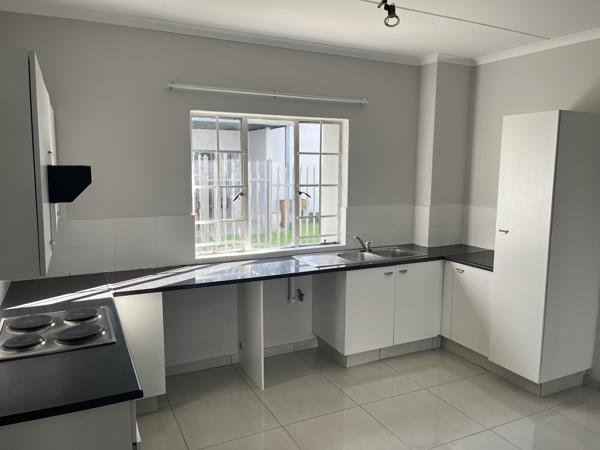 Modern open-plan kitchen with space for 2 wet appliances, double door fridge, and room to add more cupboards for that dream storage setup
