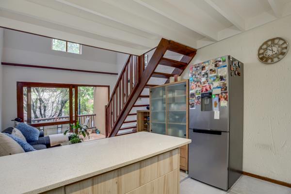 The open-plan living and dining area is bright and inviting, with ample space for relaxing or entertaining. The loft area adds a versatile extra living space that can easily be used as a second lounge, home office, or creative studio. The bedroom is generously sized, offering comfort and natural light, while the full bathroom is neat and well maintained.