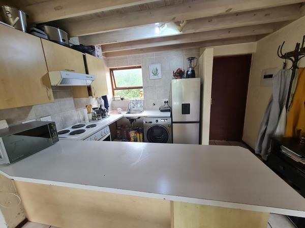 The open plan kitchen has caesarstone countertops, electric stove with oven, space for 2 undercounter appliances and a single door fridge.