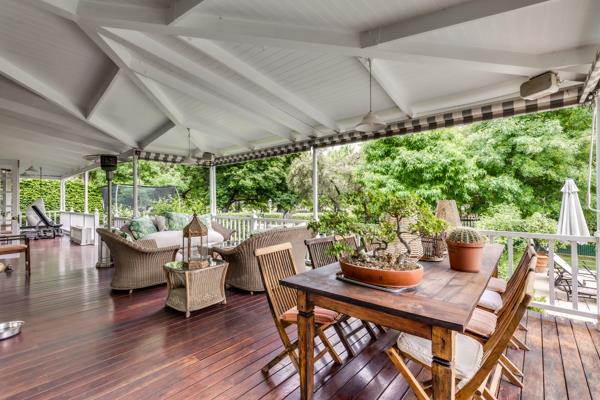 From the moment you step through the front door, youre welcomed by a sense of warmth and understated elegance. The living spaces flow beautifully rich Oregan pine floors, two inviting fireplaces, and doors opening wide onto a wraparound entertainers patio. Here youll find your perfect spot for morning coffees, weekend braais, or sunset drinks overlooking the lush garden, firepit, and sparkling pool.