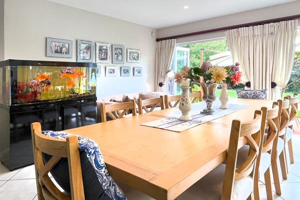 Breakfast room area that leads out to a courtyard. Separate lounge with French doors and a bay window and separate dining room that leads out onto to the entertainment area and garden .