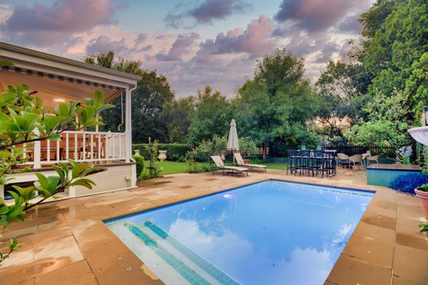 Situated in the prestigious Fourways Gardens estate, this elegant and distinguished family home is a masterpiece of timeless charm, offering classic architecture, modern comforts, and breathtaking natural surroundings. Accessed via a private panhandle lined with trees and climbing roses in wine vat planters, the charming forecourt immediately sets the tone for a home that exudes old-world character and sophistication.