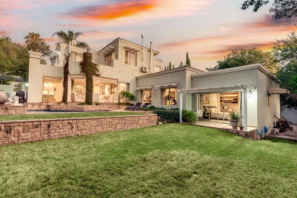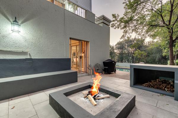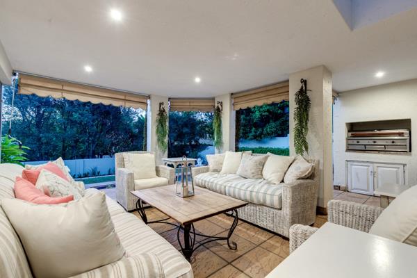 Step inside to a grand entrance hall that flows effortlessly into an elegant dining room with feature fireplace, and a warm, inviting lounge with a combustion wood-burning fireplace perfect for cozy evenings. Both living spaces open seamlessly to a generous entertainers patio, complete with a fitted gas braai, cocktail bar, and breathtaking views of the sparkling pool and lush garden oasis.