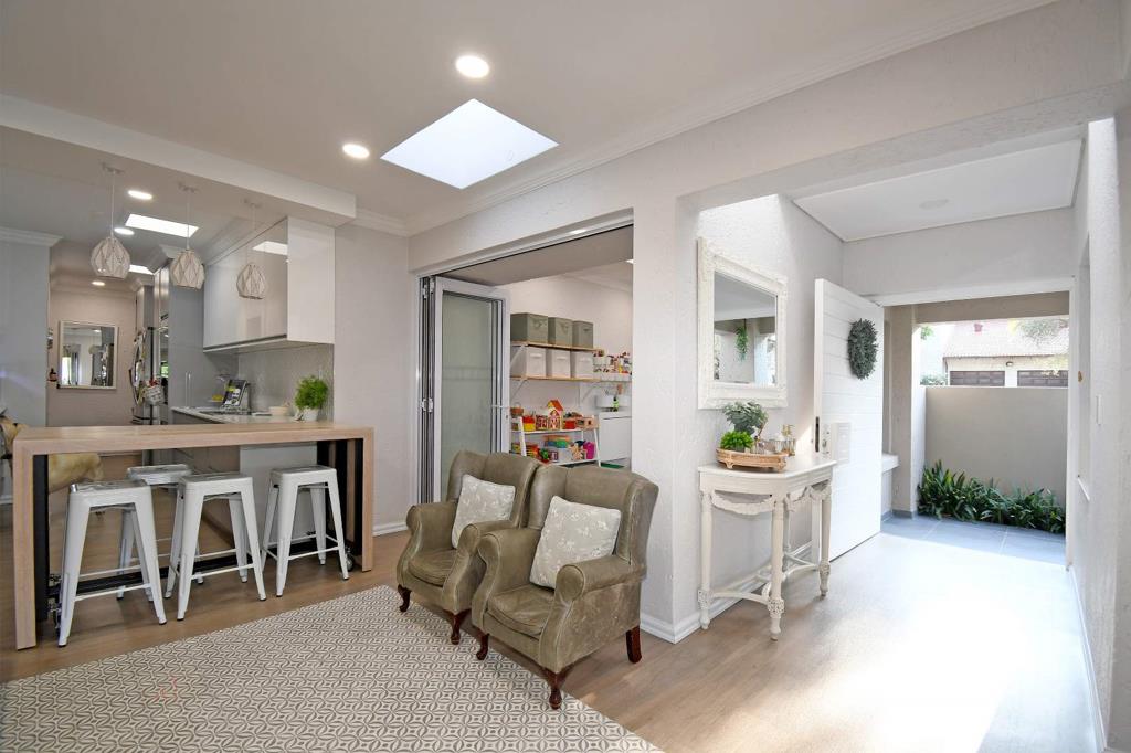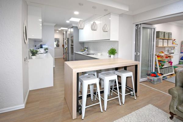 This gorgeous home has been given the ultimate renovation. The galley style kitchen is any cooks dream as it offers built in whirlpool 6th sense eye level oven and microwave. There is space for a large double fridge / freezer and plenty of counter top and storage space, there is also a separate scullery leading into a courtyard.