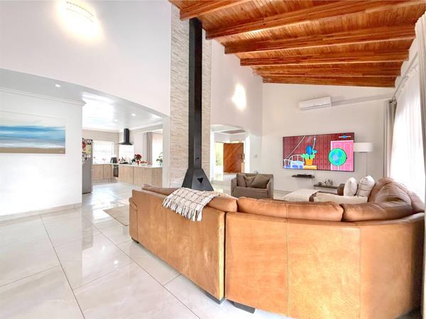 Enjoy seamless indoor-outdoor living with a large covered patio, built-in braai area, and views over the expansive garden and sparkling family pool the perfect setting for weekend gatherings or lazy summer afternoons.