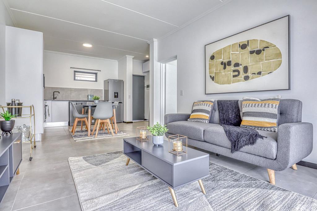 Discover the perfect blend of style and functionality with this contemporary 55m one-bedroom, one-bathroom executive apartment in the vibrant Fourways area. This modern living space offers a premium experience at an attractive price. The spacious open-plan design with a northern outlook maximizes natural light, creating a bright and inviting atmosphere. The kitchen boasts high-quality Defy eco-friendly appliances, including an electric oven and gas hob, with a 2-year warranty, ensuring efficiency and convenience. Energy optimization features, such as geysers with heat pumps and fully functional inverters, provide reliable and sustainable living. The sleek finishes, including quartz countertops and matte black trimmings, add a touch of elegance throughout the apartment. The en-suite bedroom, tiled flooring, and prepaid meters enhance the overall comfort and functionality for easy utility management. With unobstructed north-facing views and superior build quality by Summercon, this apartment guarantees a premium living experience with fibre-ready connectivity for high-speed internet access.