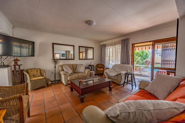 The living area opens out to a beautifully covered patio that overlooks a sparkling private swimming pool and manicured garden. Whether youre hosting summer braais, enjoying weekend brunches, or simply soaking up the sun, the outdoor area is designed for relaxation and leisure. The patio also offers excellent protection from the elements, allowing year-round enjoyment.