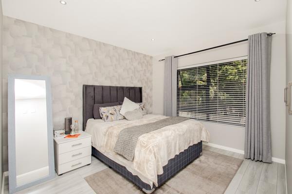 All the bedrooms are spacious and feature luxurious laminate floors, built-in cupboards and elegant blinds. The main bedroom is en-suite with a tiled bathroom that is spacious and features a shower, a vanity and toilet whilst the tiled 2nd bathroom is equally spacious and fitted with a bath, toilet and basin. Both bathrooms are fitted with blinds too.
