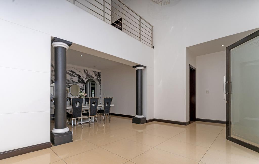 Grand Entrance andamp Ceilings: Features an opulent double-volume high ceiling entrance hall with a modern chandelier, creating an immediate sense of space and luxury, a common trait in the estate''s homes. Exceptionally high ceilings are a feature throughout the house.
