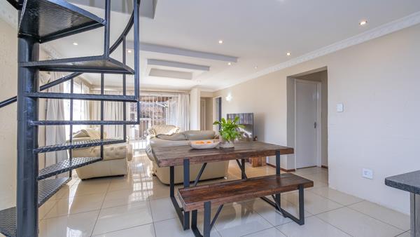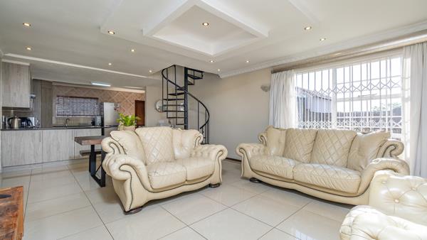 A modern and refurbished home is waiting to be snatched up by the discerning buyer. The living and dining room opens up to a a private patio facing a well groomed garden, ideal for evening sun downers and morning outdoor breakfasts. The living /dining room has stunning shiny floors and an elegant ceiling with down lights. The kitchen is very practical being open plan, boasting lovely granite tops, a gas stove, space for two under counter appliances and a double door fridge and easy access to the utility area. Three bedrooms are positioned downstairs, all with beautifully laminated flooring. One of the bedrooms has its modern en suite bathroom. Another bedroom is largely sized and has a modern bathroom with bath and shower adjacent ( with an option to turn it into a full en suite). The fourth bedroom (the master bedroom ) is upstairs and is generously spaced with plenty of natural light and its modern en suite with bath and shower. The upstairs bedroom is ideal for a family where a couple wishes to have the extra privacy from the rest of the family.