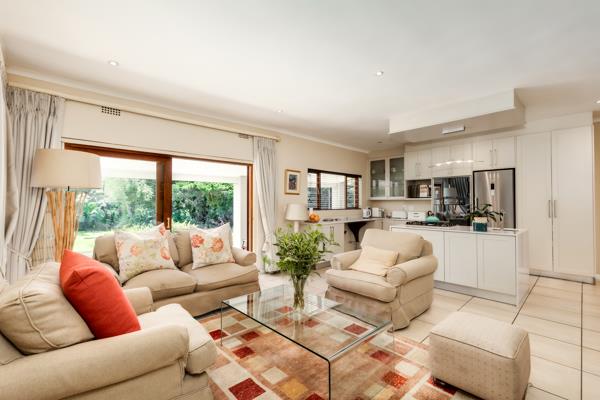 At the heart of the home lies a open-plan, modern kitchen, a dream for any chef. Featuring white quartz countertops, a central island with built-in gas hob, breakfast counter, scullery, and pantry, it integrates seamlessly with the living areas perfect for effortless entertaining.