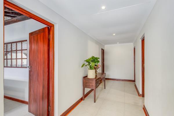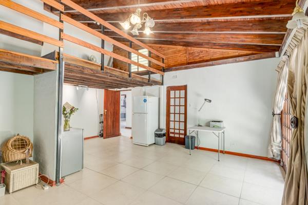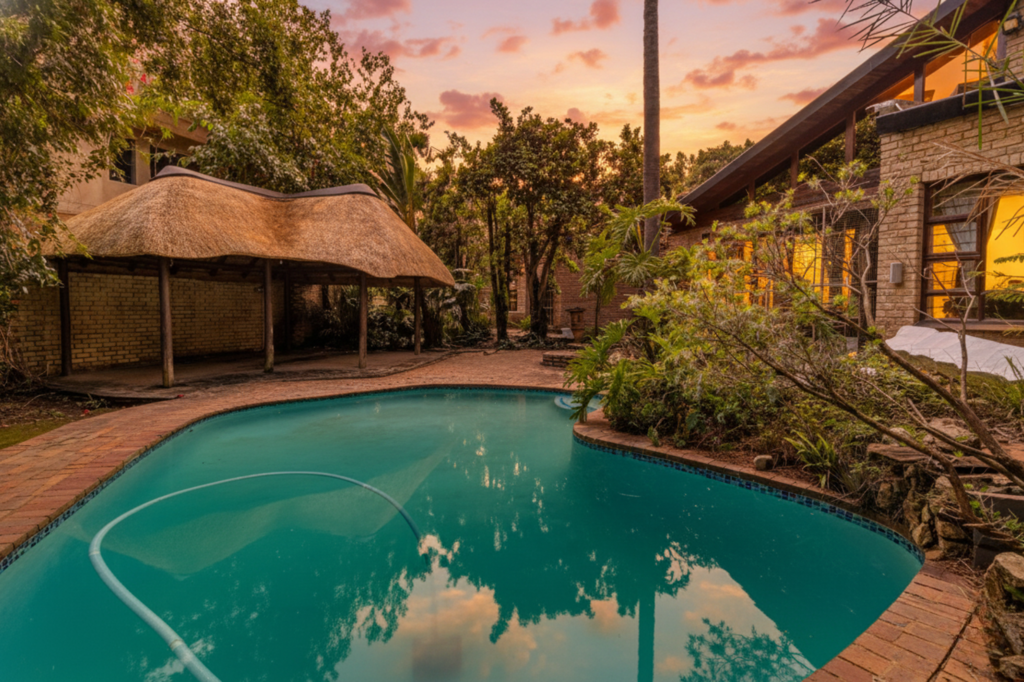 Step outside and the home truly comes alive. A sparkling swimming pool, a relaxing 8-seater jacuzzi, and a large, inviting thatch lapa create the perfect environment for weekend braais, celebrations, or quiet evenings with family. The expansive, landscaped garden includes a dedicated play area for children, offering endless space to explore and enjoy.