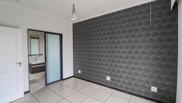 2 spacious bedrooms, fully tiled, with built-in cupboards. Both bedrooms comfortably fit queen-size beds.