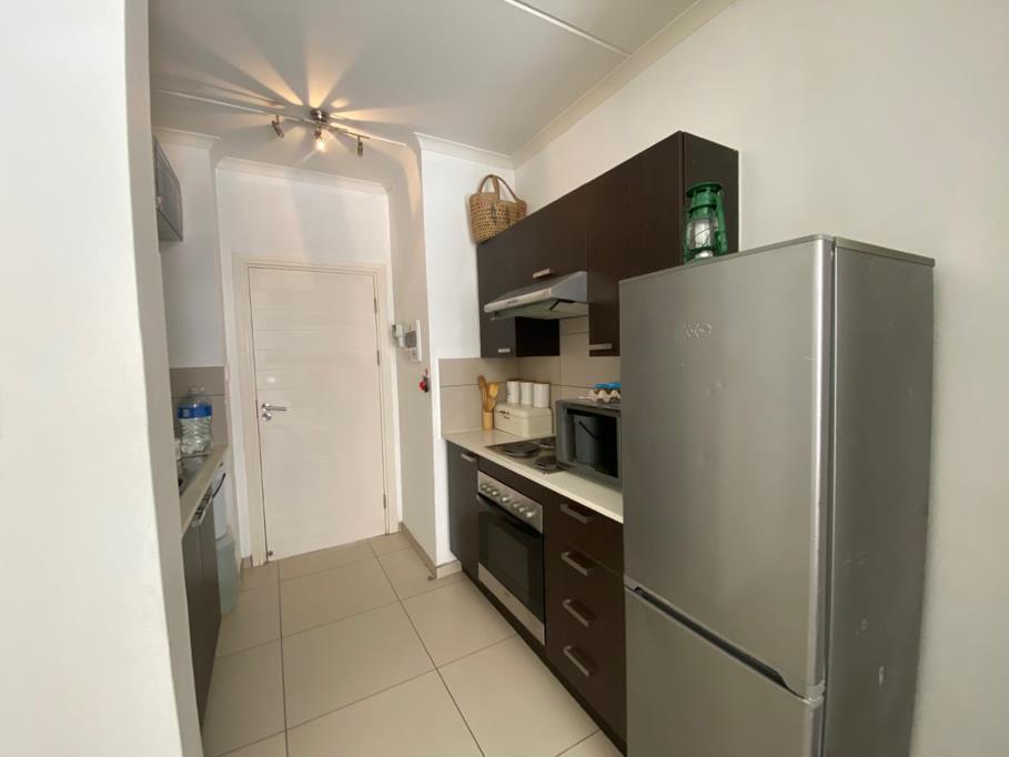 Enjoy the outdoors on your private balcony, accessible via sliding glass doors, offering views of the surrounding modern architecture. Residents benefit from a host of communal amenities within the estate, including a swimming pool, a clubhouse, a communal braai area, and well-maintained gardens. A dedicated parking bay ensures convenience.