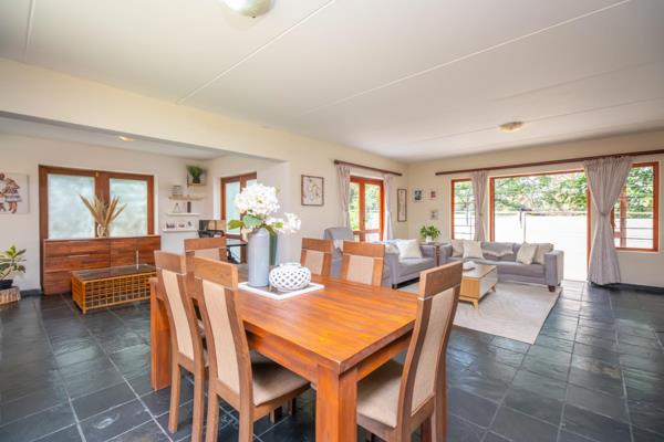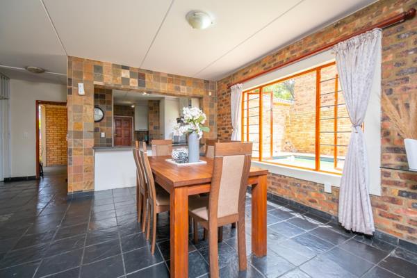 Brand New Laminate flooring has just been installed in the 4 bedrooms upstairs, which is a lovely addition to this charming, low-maintenance home. The spacious open-plan living area has three sections and opens to an entertainers covered patio with a built-in braai, perfect for hosting guests. The sparkling splash pool and wrap-around garden offer an inviting outdoor retreat. The well-equipped kitchen features granite countertops, a breakfast counter, and a separate scullery with space for three appliances, making daily living effortless and enjoyable.