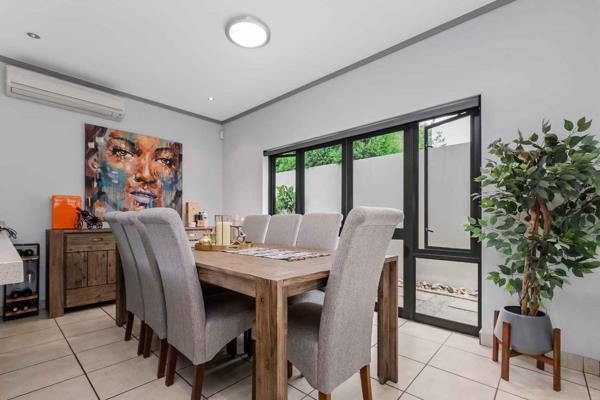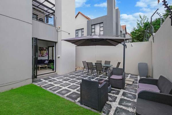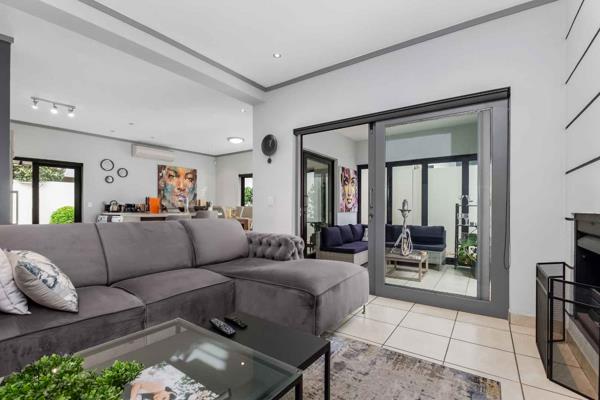 Embrace this delightful home with a modern feel throughout, in an exclusive and secure Tezula Lifestyle Estate in Fourways. The lovely entrance leads to the open plan family lounge with a feature fireplace and dining room flowing well onto a lovely fully enclosed patio with glass stackable aluminum doors and built in braai opening to a well-manicured garden with lawn for children and pets to enjoy. The modern chic style kitchen has Cesar-stone counter tops, a breakfast bar, ample cupboard storage, space for 2 appliances and access to the back garden.