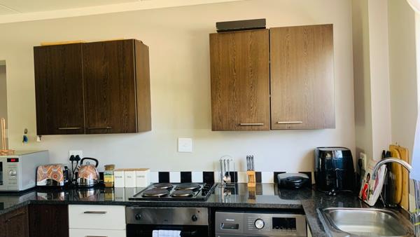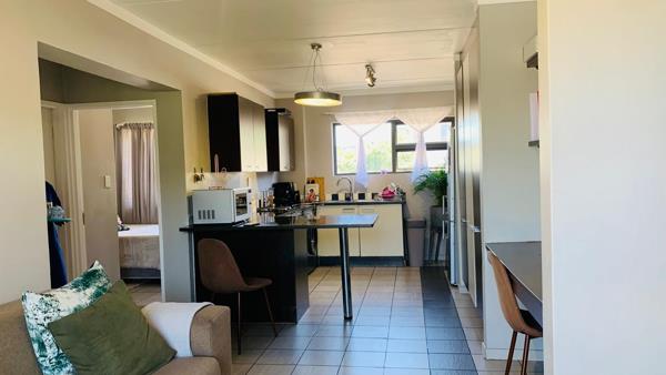 Step into a spacious open-plan kitchen and lounge area, designed for effortless entertaining and everyday living. The kitchen features ample cupboard space, sleek countertops, and room for one wet appliance. The living area flows seamlessly through sliding doors onto a private open balcony, perfect for morning coffee or evening relaxation.
