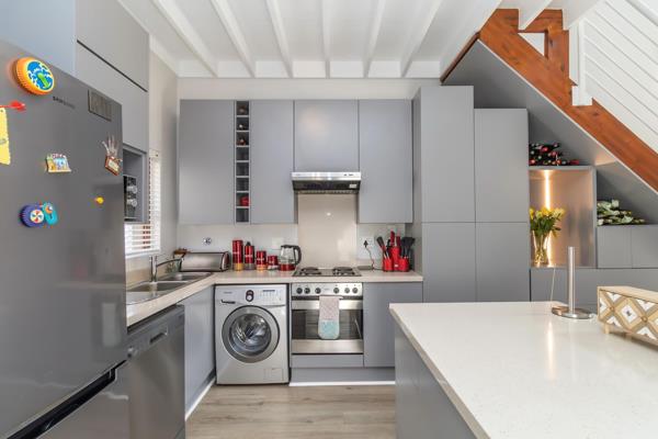 The expansive lounge and dining room area boasts sleek vinyl flooring and has undergone a recent transformation, featuring newly installed wooden cupboards beneath the staircase, complete with subtle ambient LED lighting for a sophisticated touch. Additionally, a stylish built-in wine rack adds to the space''s allure. Furthermore, a spacious drawer is equipped with an electrical feed for convenient bulk charging and storage of lights, specifically designed for times of load-shedding. All cupboards and drawers are thoughtfully designed to be easily activated and closed with a simple touch.
