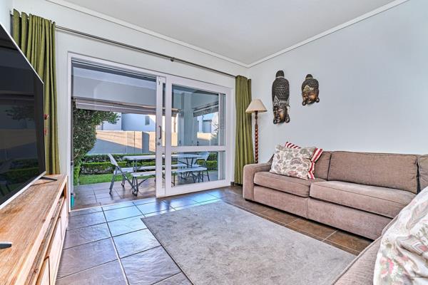 The modern kitchen is both practical and stylish, equipped with a new hob, ample cupboard space, and a central island, making meal preparation a breeze. It also includes space for two appliances, ensuring convenience and functionality. The main en-suite bedroom is generously sized, with built-in cupboards and a serene atmosphere leading out to the patio. The second bedroom, also with built-in cupboards, opens up to the patio. The unit has two allocated carports conveniently close to the unit.