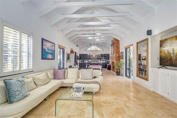 Additional features include a double garage with parking for three vehicles, and a scullery with space for three wet appliances. There are three bathrooms plus a guest loo for convenience. The kitchen features a 5-burner Smeg stove and black granite counters, while the homes architecture boasts a tiled roof, wooden window frames, stable doors, high-end tile and laminate flooring, and air conditioning throughout for year-round comfort.