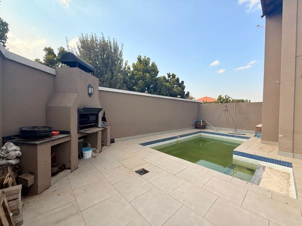 Outside, a sparkling swimming pool invites you to unwind in your private garden sanctuary, while the surrounding entertainment area is ideal for weekend braais and year round family gatherings. The garden is low maintenance but lush, offering both greenery and tranquillity.