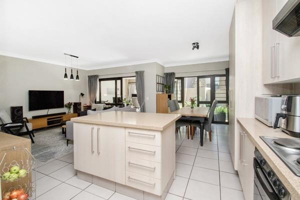 Welcome to this exquisite gem in the centre of the forested bush baby conservancy of Sibiti Private Estate, Fourways, which offers a beautiful and safe lifestyle that includes a five-star clubhouse, swimming pool, tennis court and a restaurant coming soon. The townhouse is 136 sqm of perfection, encompassing two supersized bedrooms and immaculate, modern living spaces that include a patio enclosed with fold-back, double glazed glass doors with aluminium frames on both sides to form a study/sunroom. It has a 5.5 kVA, solar-ready inverter system and two covered carports. This townhouse is unique in that it is on a freestanding plot, not sharing a wall with a neighbouring property, affording the house prized privacy.