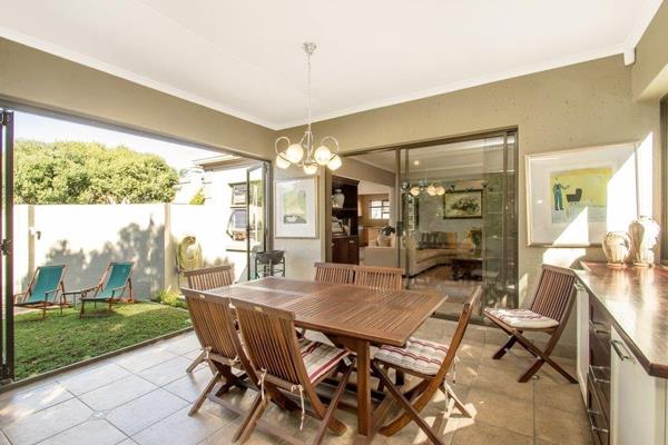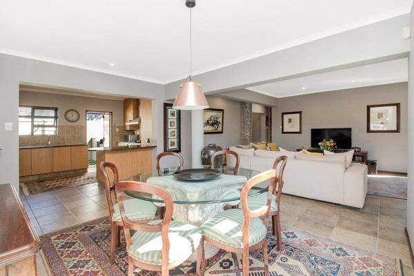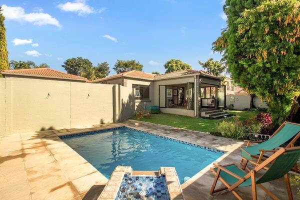 Beauty and perfection from corner-to-corner of this plush, freehold, cluster house and its manicured garden are offered by this exclusive three bedroom, two bathroom single storey home in the heart of a gorgeous and secure estate in Broadacres. Designed for easy living and seamless entertaining, the open-plan kitchen, dining room and lounge flow into an all-weather patio, fitted with built-in cabinetry and enclosed with aluminium-framed glass stack doors that open wide to the walled and private garden, brimming with greenery, where a sparkling pool invites you to relax and unwind.