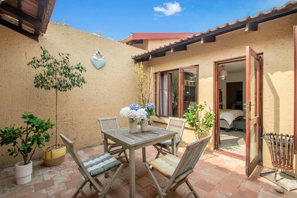 It''s so fresh, modern and inviting, and it has a huge inverter system that keeps the house powered permanently. Look at all this space! 155 sqm of renovated garden townhouse with wide open living rooms, three bedrooms, a study, modern bathrooms and kitchen plus two internal open-air atriums, all walled and private inside a secure complex within walking distance of Fourways High School. The complex is guarded 24/7, has a communal swimming pool and is across the road from a park that enjoys blazing sunset views. The complex allows two small-to-medium sized pets. No parrots.