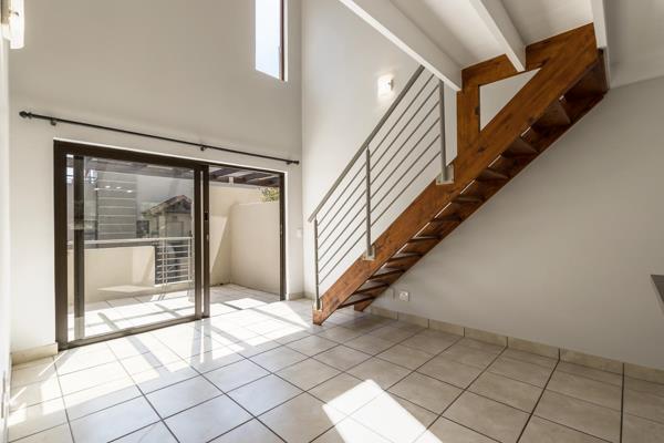 Step inside to discover a sunlit living area that seamlessly flows onto a private balcony, perfect for morning coffees or evening sundowners. The well-appointed kitchen features sleek finishes and ample storage, catering to both functionality and style. The spacious bedroom, bathed in natural light, provides a peaceful retreat, while the loft area offers versatility - use it as a home office, entertainment space, or an additional lounge, further complimented by a private covered patio ideal for entertaining.