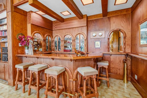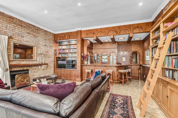 The formal lounge and generous family room, fitted with an inviting built-in bar and library, open seamlessly to the outdoors.