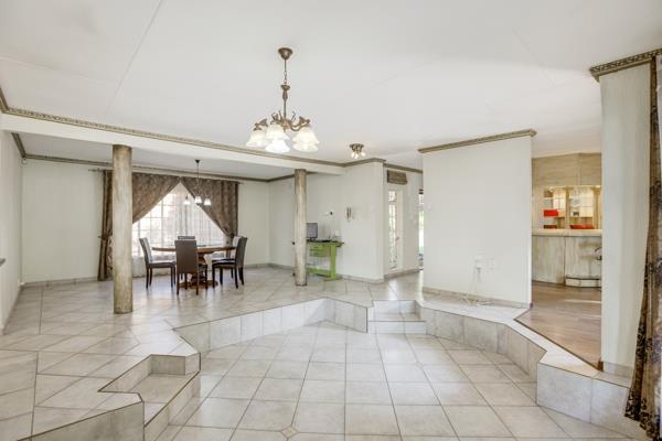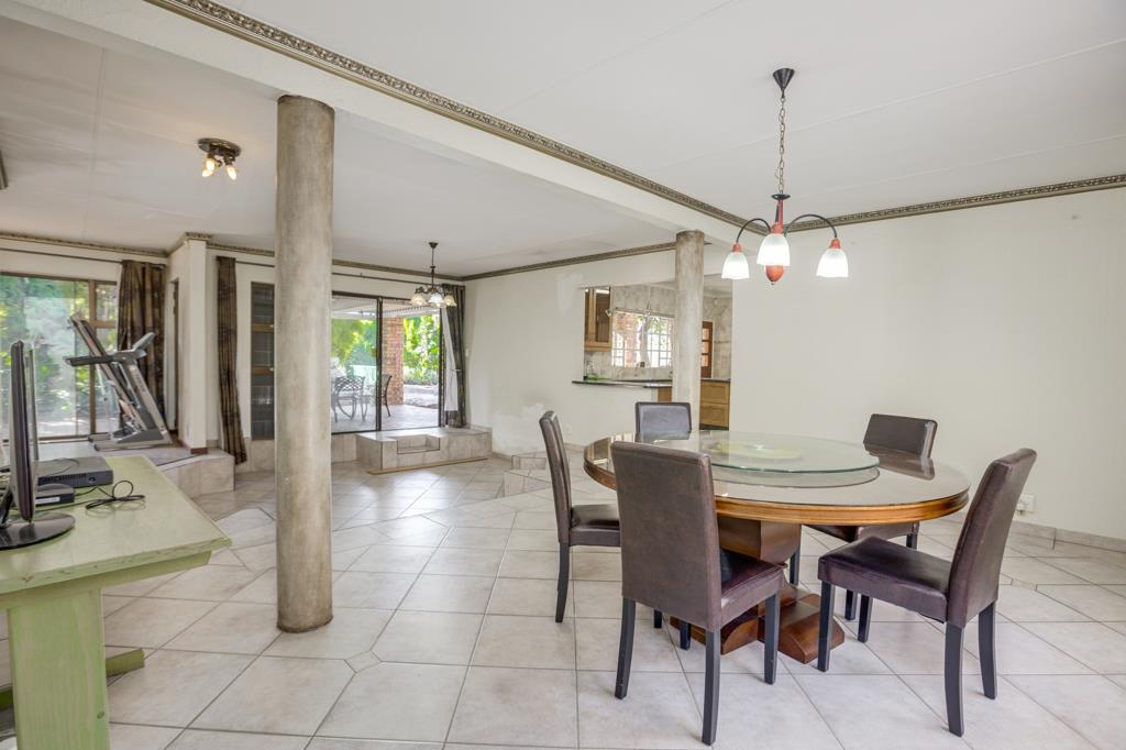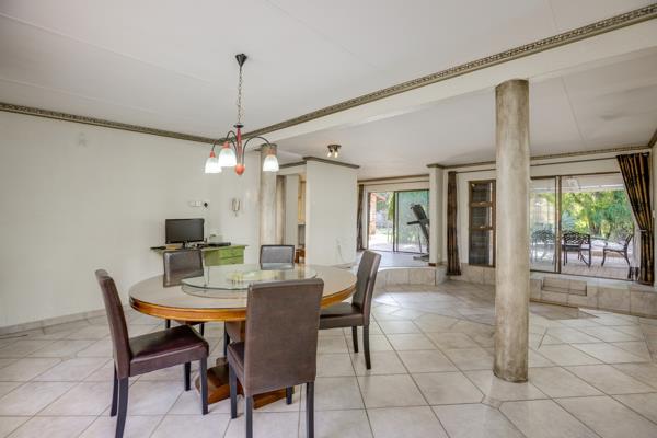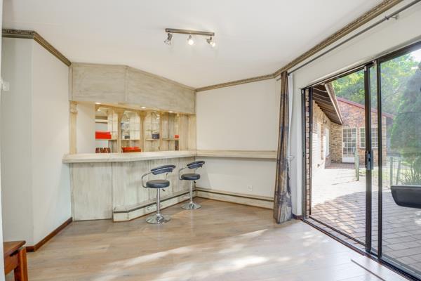 This fantastic spacious home with accommodation for the extended family is situated in the secure boomed area of ''Little Fourways Village'''' its offers so many features too numerous to mention. It has 4 bedrooms and 2.5 bathrooms. The sunken lounge and dining room are open plan with a flow to the covered patio, and a built in bar to boot. The modern well fitted kitchen has granite tops, a double oven, and a glass top stove, plus a separate scullery. The main bedroom has an en-suite separate study/office/work from home room. Outside store room. Staff accommodation. Double automated garaging with an attached workshop area, plus an extra single covered parking bay. Huge wendy house/zozo hut plus a unique rock pool with a flowing fountain, all set in a an enormous well manicured garden.