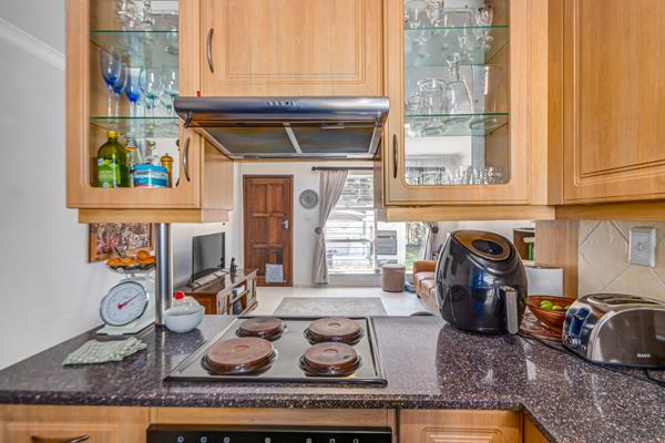 Step outside to a private patio and garden area, perfect for relaxation and outdoor entertaining, complete with a built-in braai. The property includes one dedicated parking bay and is pet-friendly. Residents benefit from enhanced security features within the complex, including a fence, security post, access gate, electric fencing, intercom, and 24-hour security, ensuring peace of mind and scenic views.