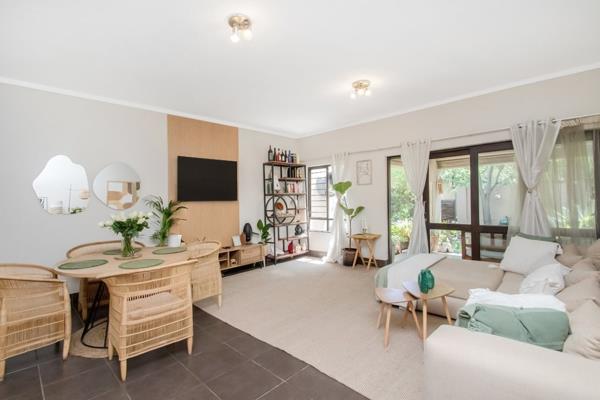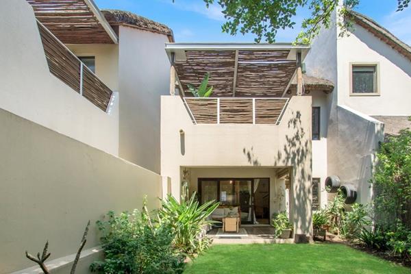 AN EXQUISITE GEM IN A BUSH BABY CONSERVANCY: SECURE ESTATE, BOREHOLE, WATER TANKS. Perfection, light and space are what you will find in this 120 sqm, immaculate, two bedroom, 2.5 bathroom, double storey townhouse with the most inviting open plan kitchen, dining room and living room, opening to a covered patio and a private, walled and lush garden. It is located in the forested setting of Sibiti Private Estate, Fourways, offering a resort lifestyle that includes a picturesque entertainment area with a clubhouse, swimming pool and tennis court.
