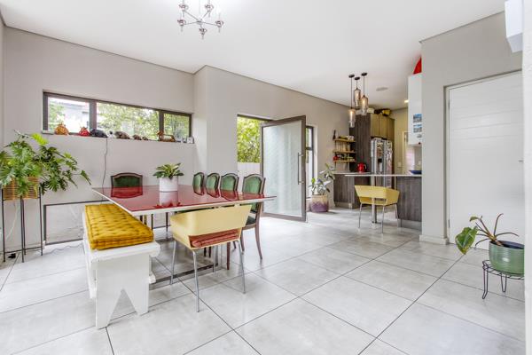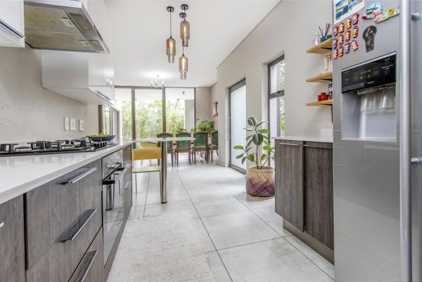 Lower Level: The heart of the home is the chef-inspired kitchen boasting ample counter space, plentiful cupboards, a hob, under-counter oven, extractor, and room for a double-door fridge everything you need to cook up gourmet meals with ease. Adjoining the kitchen is a generous scullery with space for three under-counter appliances, providing extra functionality and storage for a clutter-free cooking environment. Adjacent to the kitchen, an extra-large dining area invites memorable gatherings around the table. The cosy lounge is designed for intimate movie nights and lively family game evenings. Both living spaces flow effortlessly through sliding doors onto a spacious covered patio, bringing the outdoors in and creating a seamless indoor-outdoor living experience.