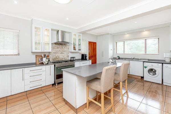 This is a special home full of light, elegant simplicity and character afforded by an open plan layout a huge and modern kitchen fitted with an island and a SMEG gas hob wood laminate floors a fireplace with a mantelpiece in the lounge and stack doors in the extra-length living room that open to the fabulous, covered patio overlooking a manicured garden with a raised swimming pool. Add to this a staff room, an outside WC, 40 000 litres of tanked water, a solar system with eight panels and a 5 kVA battery, and multiple layers of security, and you have a home to last a lifetime.