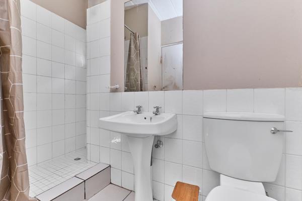 The spacious main bedroom comfortably accommodates a king-size bed and has built in cupboards, it features an en suite bathroom with a shower. The second bedroom, large enough for a queen-size bed, also includes built-in cupboards. A family bathroom with a bath, basin, and loo completes the home.