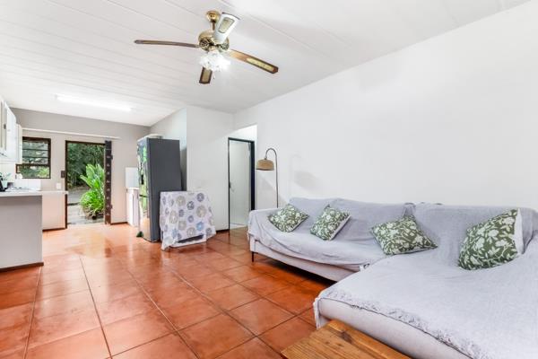 Double doors lead from the living area onto a covered patio, seamlessly extending to a wraparound garden, offering a private outdoor retreat. The main bedroom includes an extra cupboard (with the option to keep the additional cupboard), while the second bedroom also has room for additional cupboards.