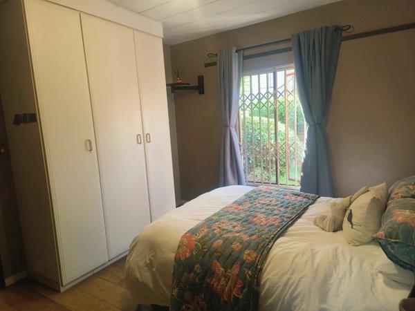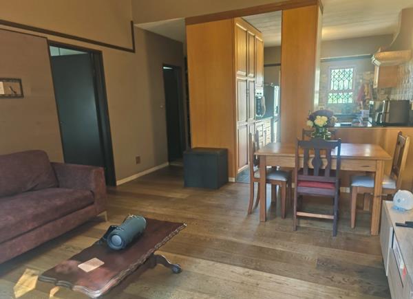 Featuring high volume ceilings, the living space has beautiful, natural wood-finish laminate flooring and comfortably accommodates both a living area and dining room. The tiled kitchen, fitted with an abundance of wooden cupboards (storage is of no concern!), has granite tops and boasts an ELO and glass hob. 2 spacious bedrooms with built in cupboards. The main bathroom is en-suite and offers a bath. The 2nd bathroom has a shower. The patio overlooks the semi-private garden, and 1 designated carport is only a few steps away.