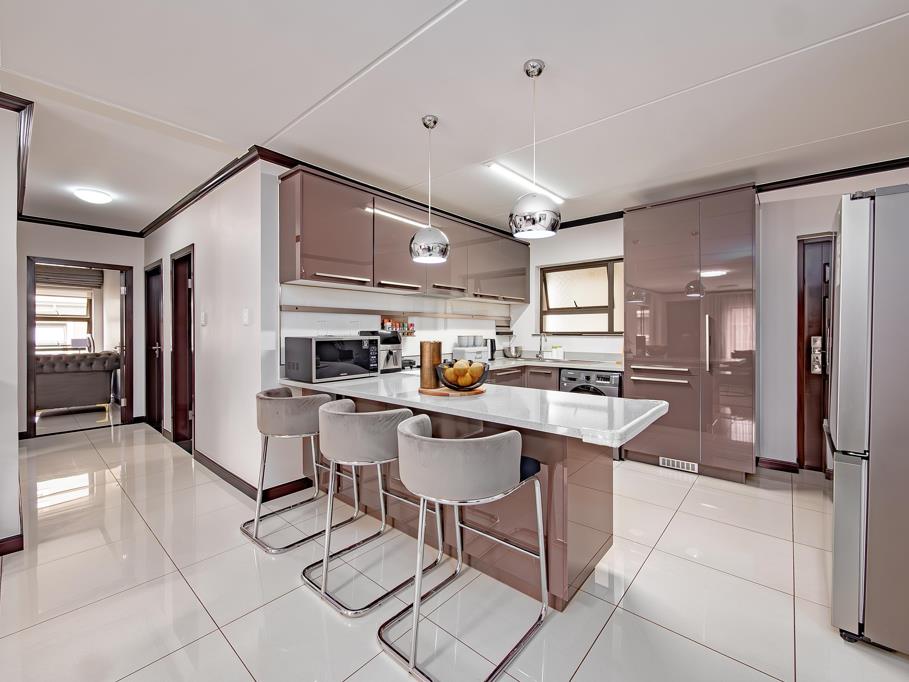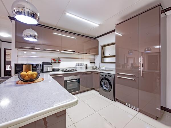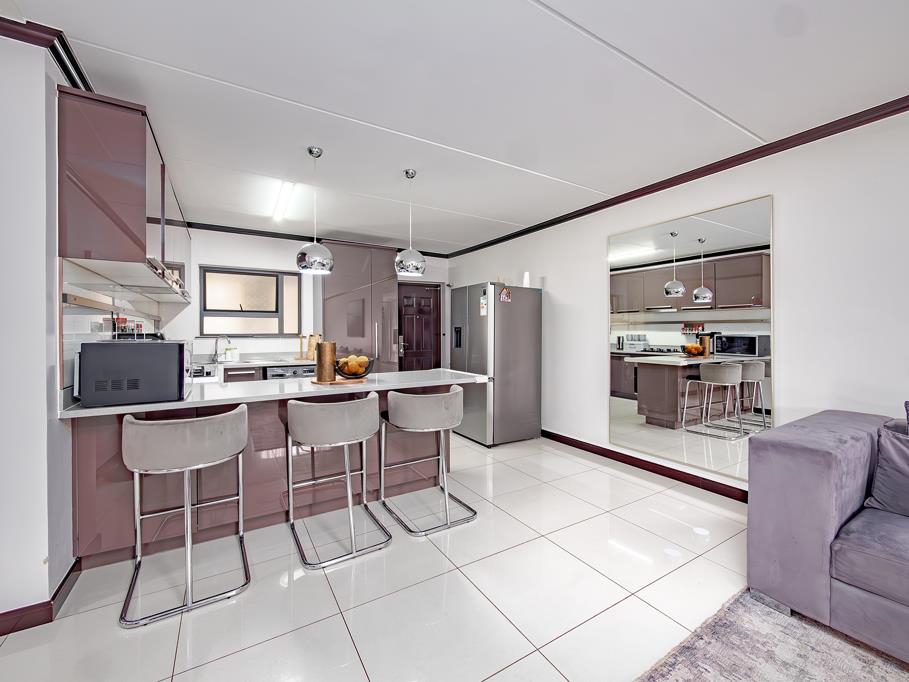 The kitchen is fitted with a gas hob, undercounter oven, a breakfast counter, and space for one plumbed appliance. A built-in workstation in the living area creates the ideal spot for working from home. The generous living space easily accommodates both a dining room and lounge suite. The main bedroom is impressively sized and features a full en-suite bathroom, while the second and third bedrooms share a second full bathroom, making this home ideal for families or professionals.