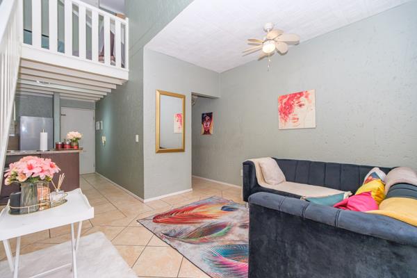 This beautiful loft apartment offers modern comfort and easy living in a sought-after Lonehill location. The open-plan kitchen, featuring granite countertops and space for one under-counter appliance, flows seamlessly into the lounge and out to a private patio perfect for relaxing or entertaining. A bathroom with a shower and an additional linen cupboard complete the lower level.