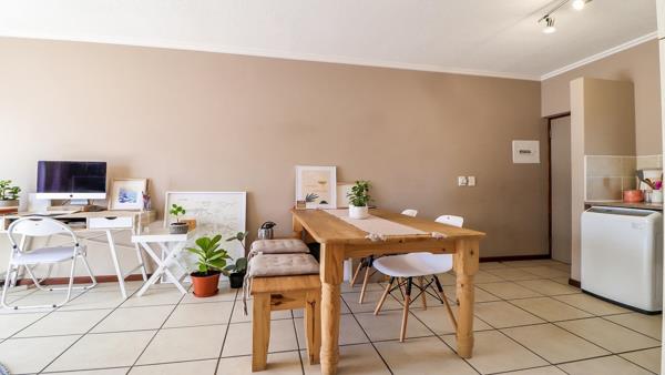 - Open plan living area neatly tiled and opens out to a sunny balcony