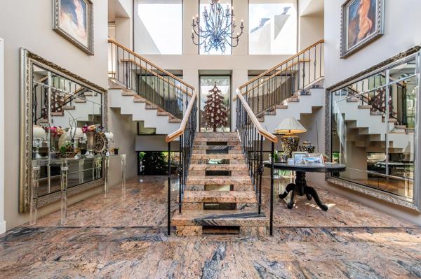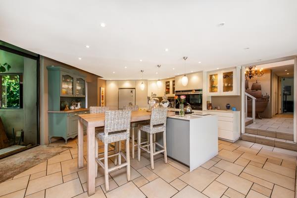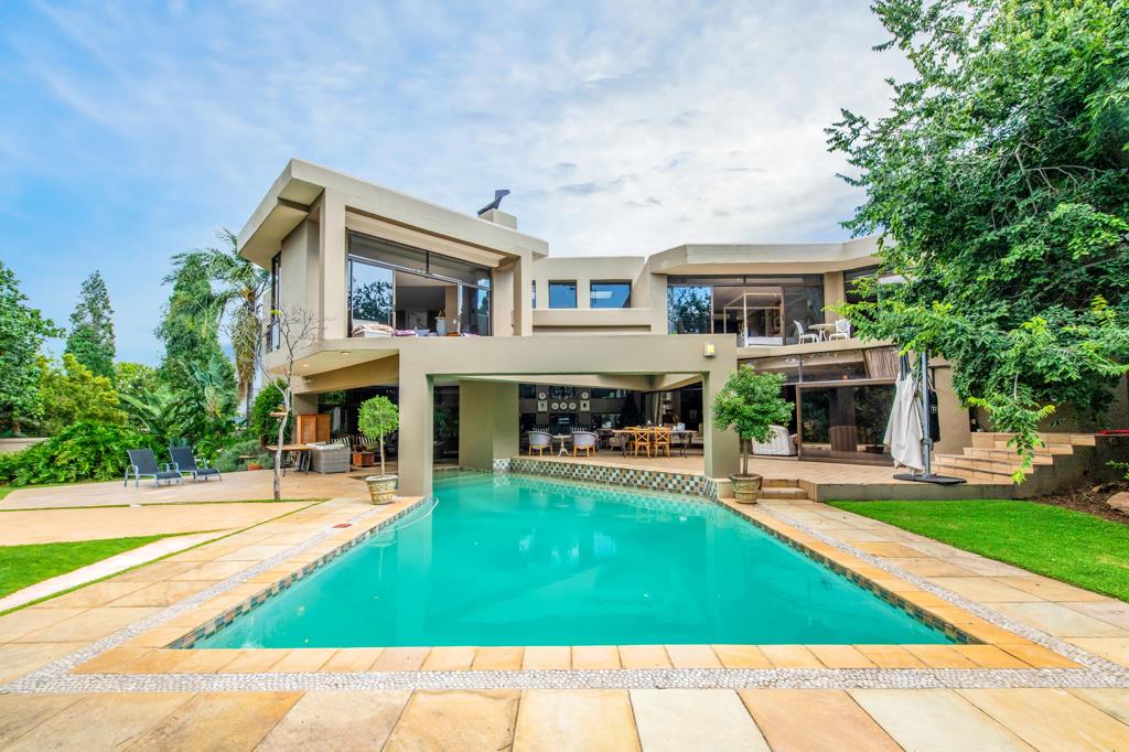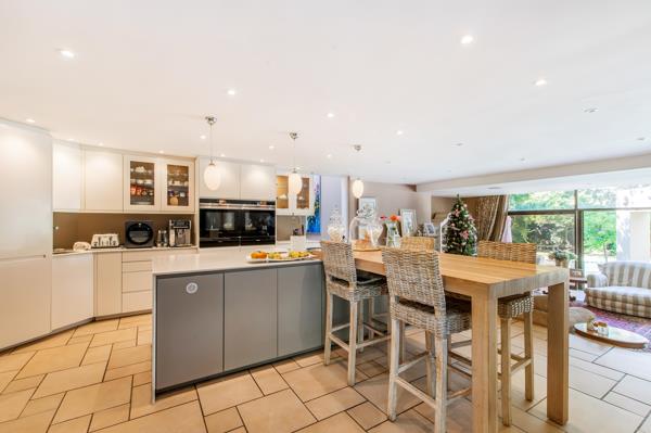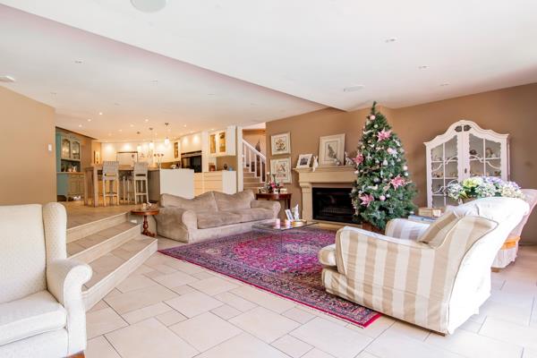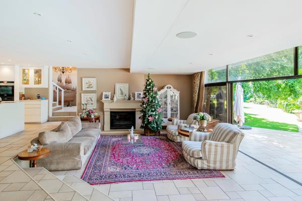 The heart of the home lies in its open-plan living spaces, easily blending sophistication and functionality. The modern kitchen is a chef''s dream, complete with top-of-the-line appliances and a separate scullery for added convenience. A spacious family room, adorned with a fireplace, opens up to the enchanting pool area through large doors.